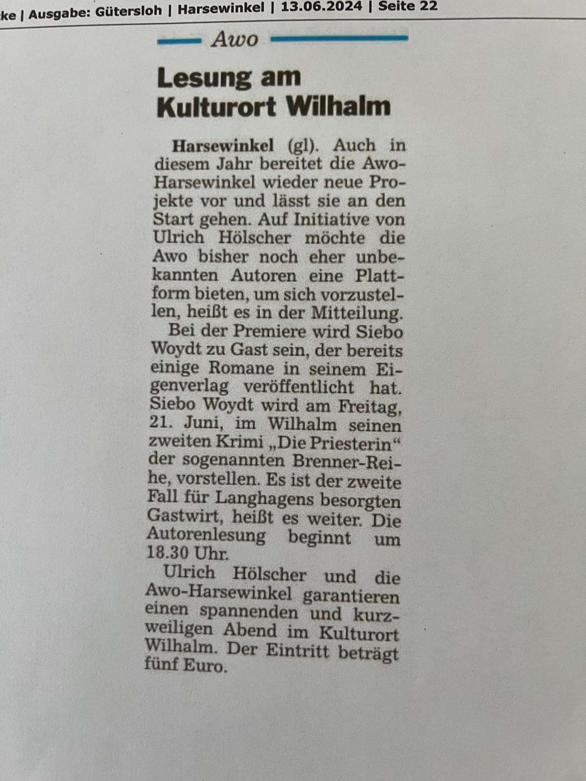 Meine zweite Benefizlesung für die AWO Harsewinkel (18. Juli 2025).