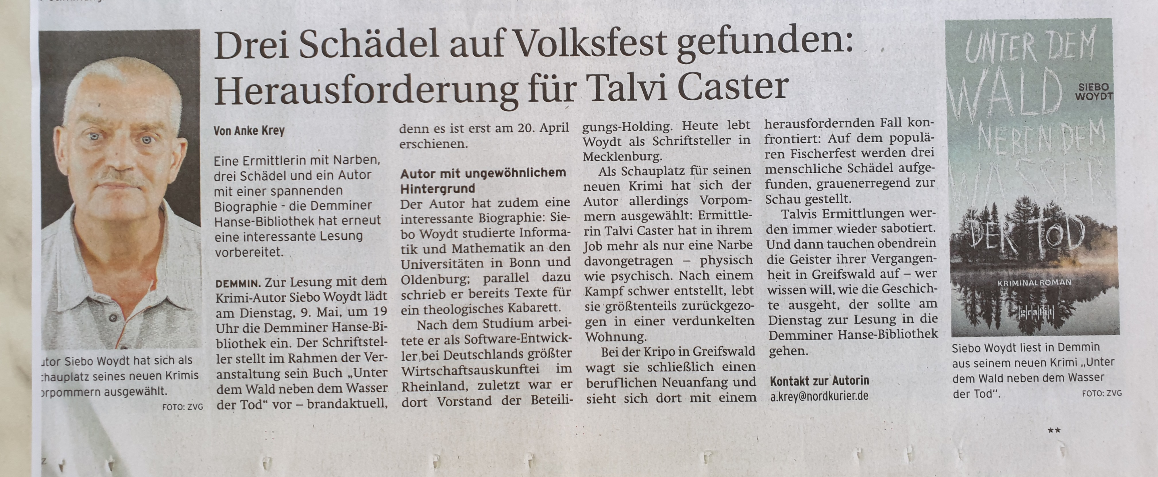 Nordkurier am 09.05.2023 zur Lesung aus "Unter dem Wald..." in Demmin
